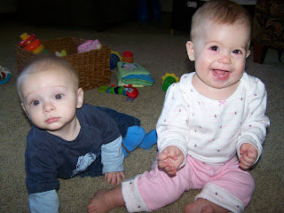 After a visit with our friends Emery (10 month old), Caleb (8 1/2 months) came home talking. He must have learned from Emery during his little play date.